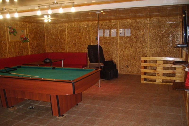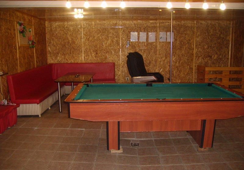 Не хочется в бассейн? Не беда! Вместо этого можно передохнуть в нашей комнате отдыха. Мы ставили своей целью создать здесь уютный, практичный интерьер из преимущественно натуральных, безопасных материалов, подобрать мебель, которая будет в равной степени удобной и красивой. Надеемся, что он придется вам по душе! Для поддержания атмосферы отдыха мы можем предложить вам бильярд и караоке. Также у нас имеется бар.